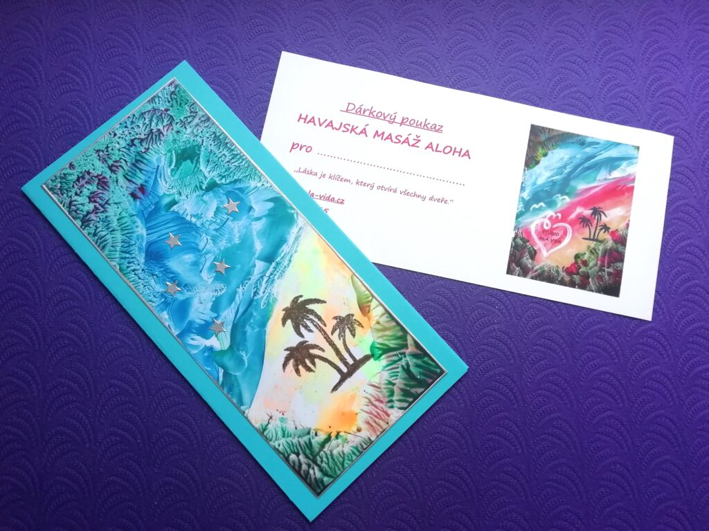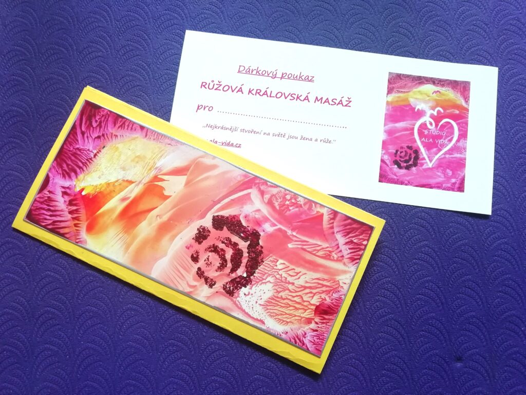 K dárkovému poukazu si můžete koupit ručně dělanou obálku s originál obrázkem (malba voskem) od Broni Smolenové.