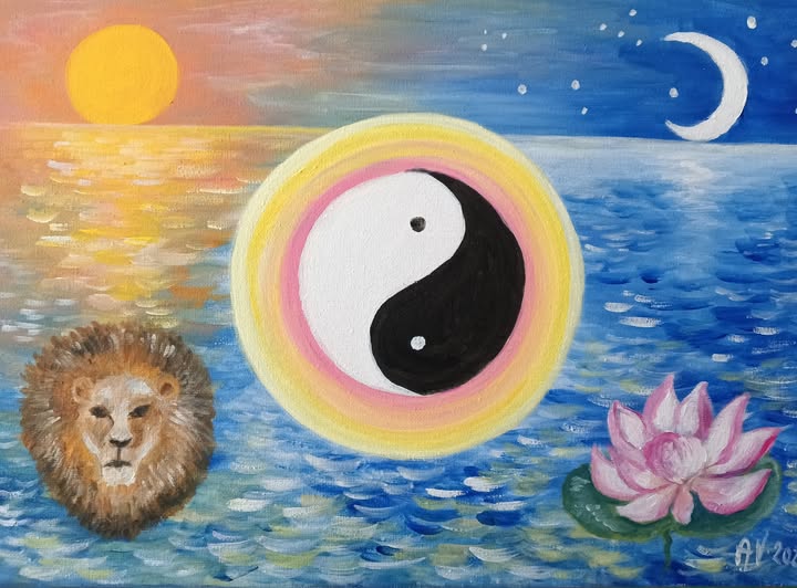 Slunce a Luna- akryl 40×40 1900 Kč